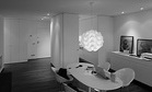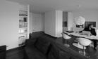 A redistribuição dos espaços utilizou o volume do recuperador de calor, substituto da anterior lareira, como elemento compositivo principal. Tendo uma localização central na planta, imposta pelas infraestruturas do prédio, o volume separou naturalmente os espaços sociais da área íntima. A flexibilização dos espaços foi conseguida por recurso a painéis de correr, sendo utilizados tanto para fechar compartimentos (cozinha e instalação sanitária) como para separar zonas (área de trabalho | quarto | quarto de vestir) ou definir espaços temporários (hall de entrada). | |